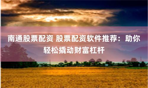 青海炒股配资为投资者提供了轻松撬动财富杠杆的新途径。通过选择合适的配资公司炒股配资网站就,投资者可以放大投资规模,提高收益率,实现财富的快速增长。